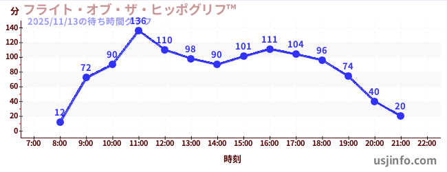 • フライト・オブ・ザ・ヒッポグリフ™$B$N(B2025年11月13日の待ち時間