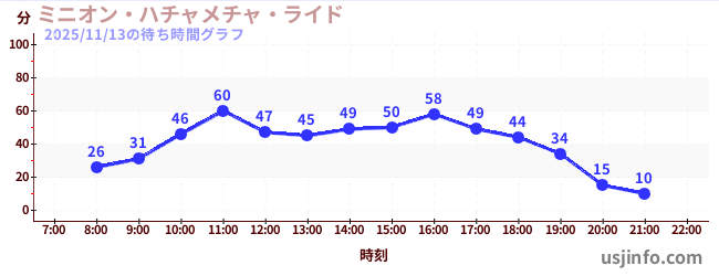 • ミニオン・ハチャメチャ・ライド$B$N(B2025年11月13日の待ち時間