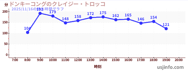 • ドンキーコングのクレイジー・トロッコ$B$N(B2025年11月16日の待ち時間