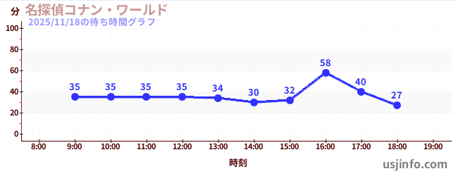 • 名探偵コナン・ワールド$B$N(B2025年11月18日の待ち時間