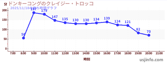 • ドンキーコングのクレイジー・トロッコ$B$N(B2025年11月18日の待ち時間