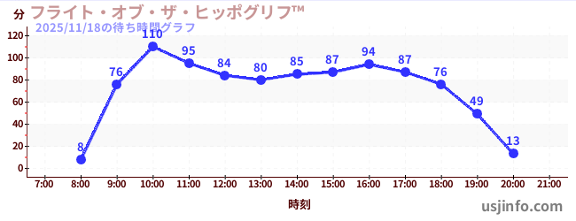 • フライト・オブ・ザ・ヒッポグリフ™$B$N(B2025年11月18日の待ち時間