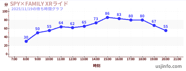 • SPY×FAMILY XRライド$B$N(B2025年11月19日の待ち時間