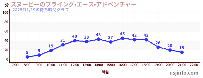 • スヌーピーのフライング•エース•アドベンチャー$B$N(B2025年11月19日の待ち時間