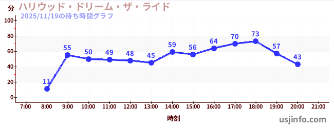 • ハリウッド・ドリーム・ザ・ライド〜バックドロップ〜$B$N(B2025年11月19日の待ち時間
