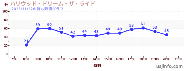 • ハリウッド・ドリーム・ザ・ライド$B$N(B2025年11月22日の待ち時間