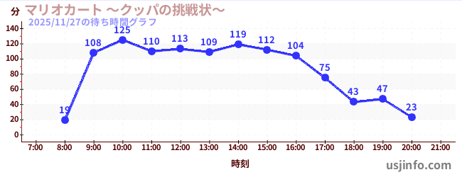 • マリオカート ~クッパの挑戦状~$B$N(B2025年11月27日の待ち時間