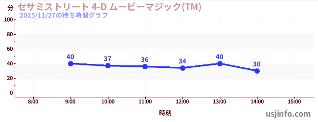 • セサミストリート 4-D ムービーマジック(TM)$B$N(B2025年11月27日の待ち時間
