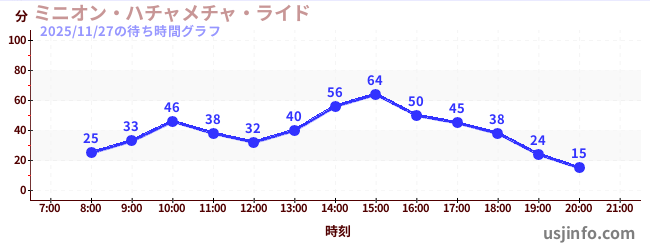 • ミニオン・ハチャメチャ・ライド$B$N(B2025年11月27日の待ち時間