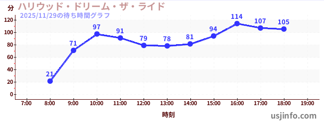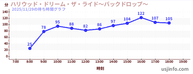 • ハリウッド・ドリーム・ザ・ライド〜バックドロップ〜$B$N(B2025年11月29日の待ち時間