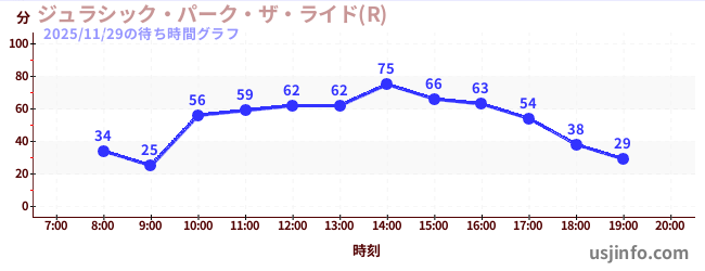 • ジュラシック・パーク・ザ・ライド(R)$B$N(B2025年11月29日の待ち時間