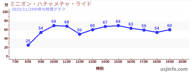 • ミニオン・ハチャメチャ・ライド$B$N(B2025年11月29日の待ち時間