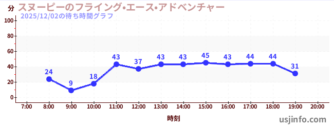 • スヌーピーのフライング•エース•アドベンチャー$B$N(B2025年12月02日の待ち時間