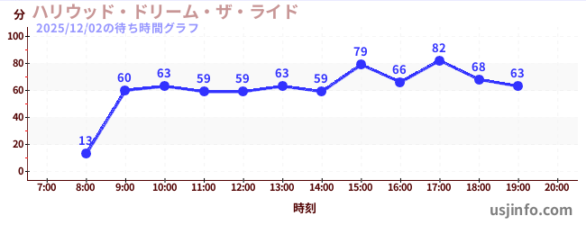 • ハリウッド・ドリーム・ザ・ライド$B$N(B2025年12月02日の待ち時間