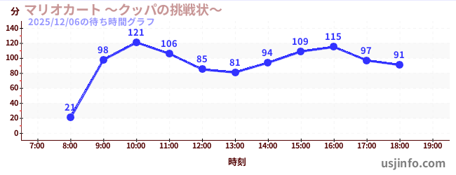 • マリオカート ~クッパの挑戦状~$B$N(B2025年12月06日の待ち時間
