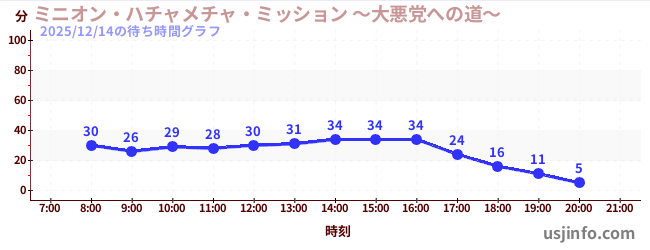 • ミニオン・ハチャメチャ・ミッション ~大悪党への道~$B$N(B2025年12月14日の待ち時間