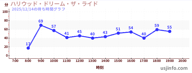 • ハリウッド・ドリーム・ザ・ライド$B$N(B2025年12月14日の待ち時間