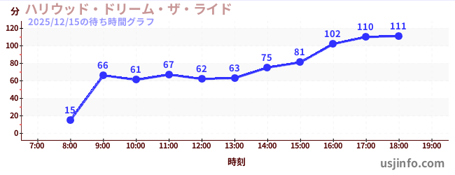 • ハリウッド・ドリーム・ザ・ライド$B$N(B2025年12月15日の待ち時間