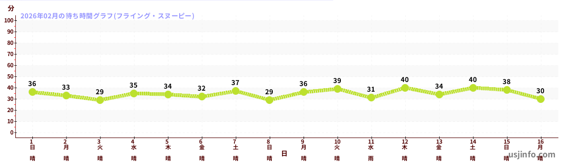 • フライング・スヌーピー$B$N(B2026年02月01日のの一日平均待ち時間