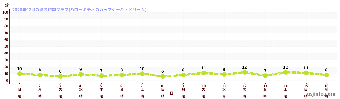 • ハローキティのカップケーキ・ドリーム$B$N(B2026年02月01日のの一日平均待ち時間