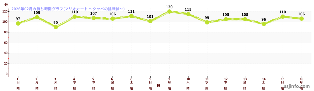 • マリオカート ~クッパの挑戦状~$B$N(B2026年02月01日のの一日平均待ち時間