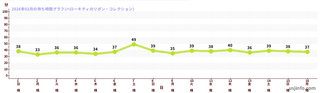 • ハローキティのリボン・コレクション$B$N(B2026年02月01日のの一日平均待ち時間