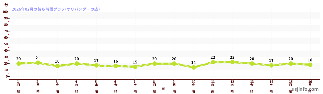 • オリバンダーの店$B$N(B2026年02月01日のの一日平均待ち時間