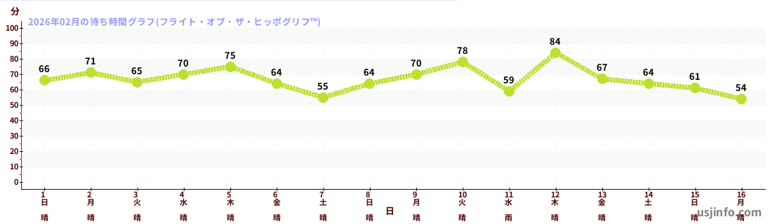 • フライト・オブ・ザ・ヒッポグリフ™$B$N(B2026年02月01日のの一日平均待ち時間