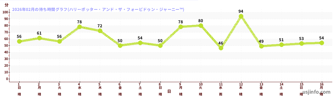 • ハリーポッター・アンド・ザ・フォービドゥン・ジャーニー™$B$N(B2026年02月01日のの一日平均待ち時間