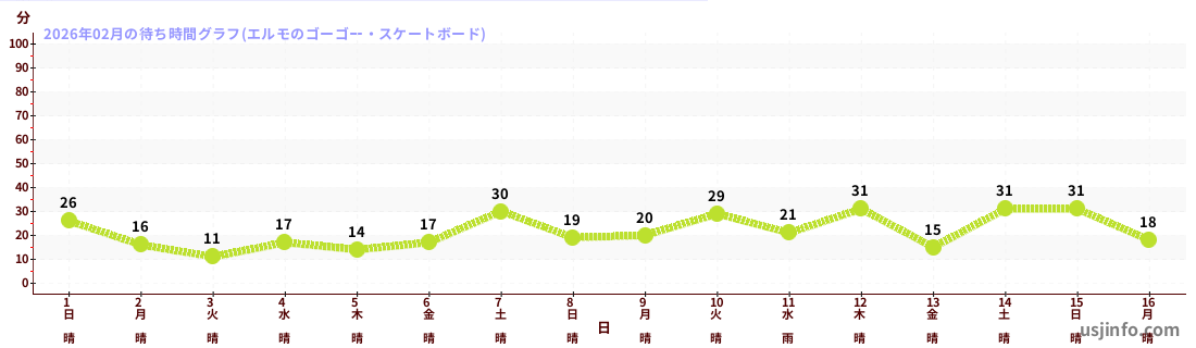 • エルモのゴーゴー・スケートボード$B$N(B2026年02月01日のの一日平均待ち時間