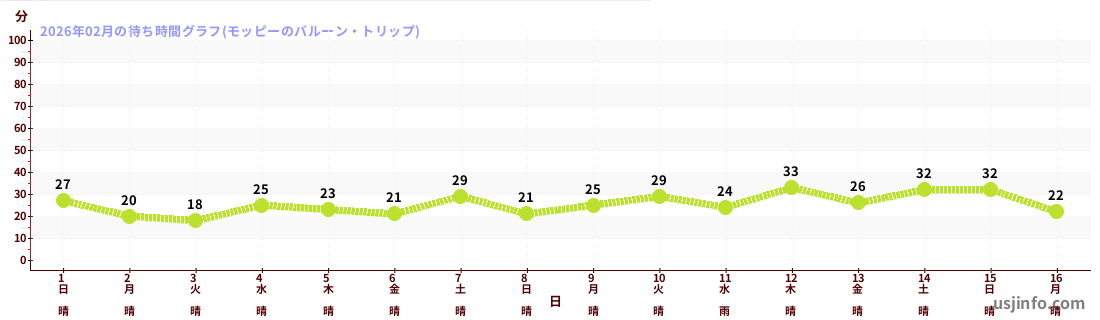 • モッピーのバルーン・トリップ$B$N(B2026年02月01日のの一日平均待ち時間