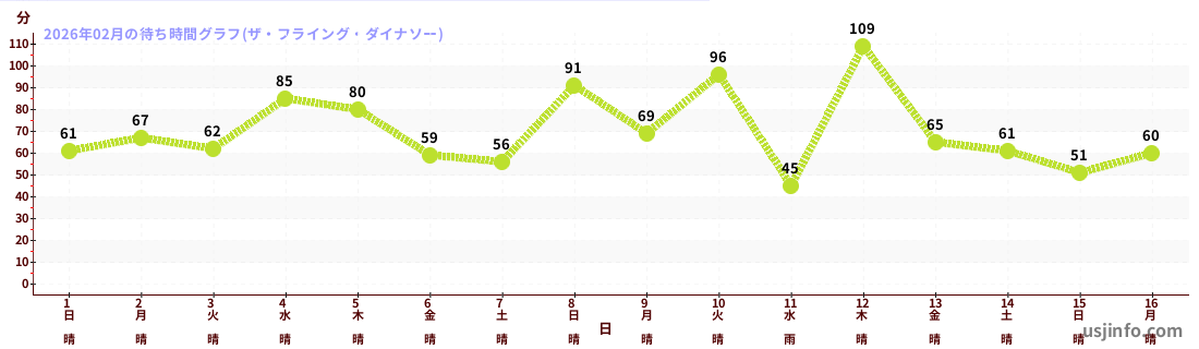 • ザ・フライング・ダイナソー$B$N(B2026年02月01日のの一日平均待ち時間
