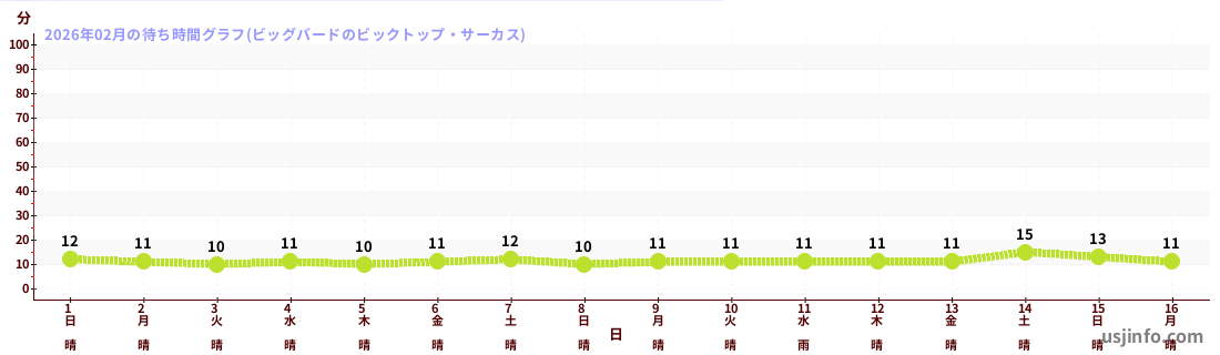• ビッグバードのビックトップ・サーカス$B$N(B2026年02月01日のの一日平均待ち時間