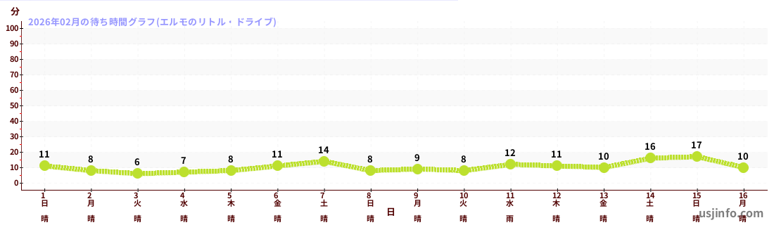 • エルモのリトル・ドライブ$B$N(B2026年02月01日のの一日平均待ち時間