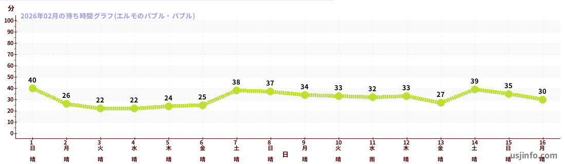 • エルモのバブル・バブル$B$N(B2026年02月01日のの一日平均待ち時間