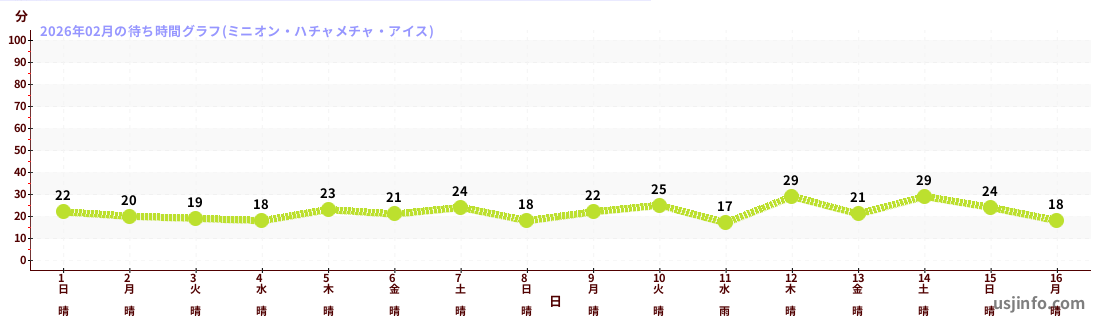 • ミニオン・ハチャメチャ・アイス$B$N(B2026年02月01日のの一日平均待ち時間