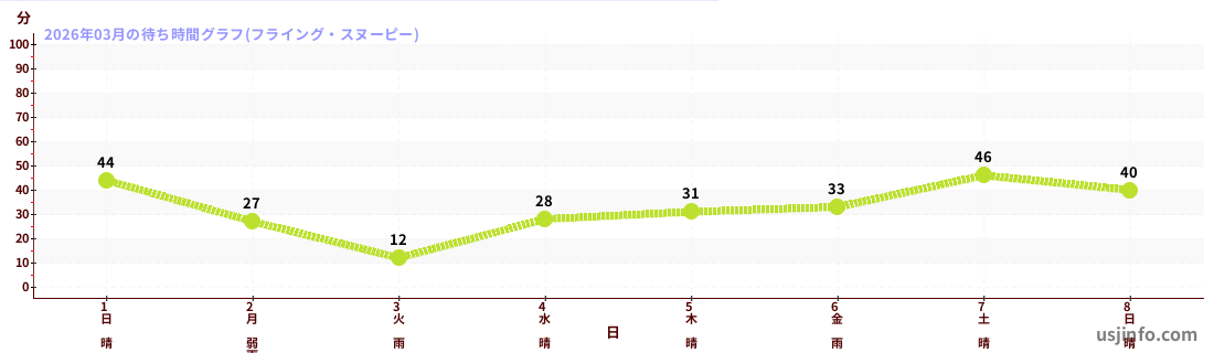 • フライング・スヌーピー$B$N(B2026年03月01日のの一日平均待ち時間