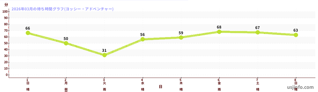 • ヨッシー・アドベンチャー$B$N(B2026年03月01日のの一日平均待ち時間