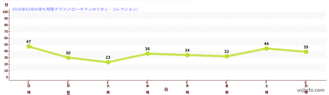 • ハローキティのリボン・コレクション$B$N(B2026年03月01日のの一日平均待ち時間