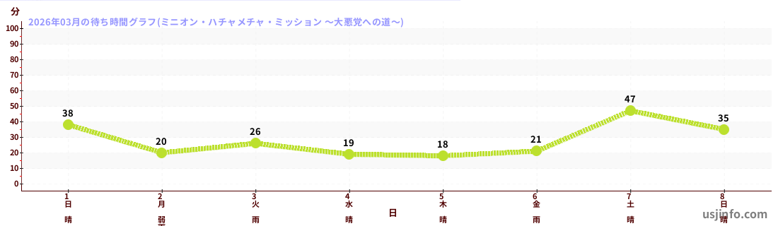 • ミニオン・ハチャメチャ・ミッション ~大悪党への道~$B$N(B2026年03月01日のの一日平均待ち時間