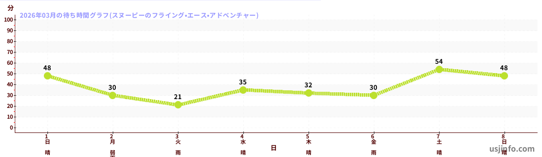 • スヌーピーのフライング•エース•アドベンチャー$B$N(B2026年03月01日のの一日平均待ち時間