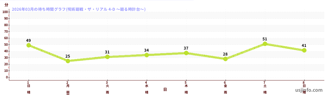 • 呪術廻戦・ザ・リアル 4-D ~廻る時計台~$B$N(B2026年03月01日のの一日平均待ち時間