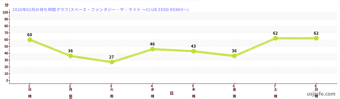 • スペース・ファンタジー・ザ・ライド ~CLUB ZEDD REMIX~$B$N(B2026年03月01日のの一日平均待ち時間
