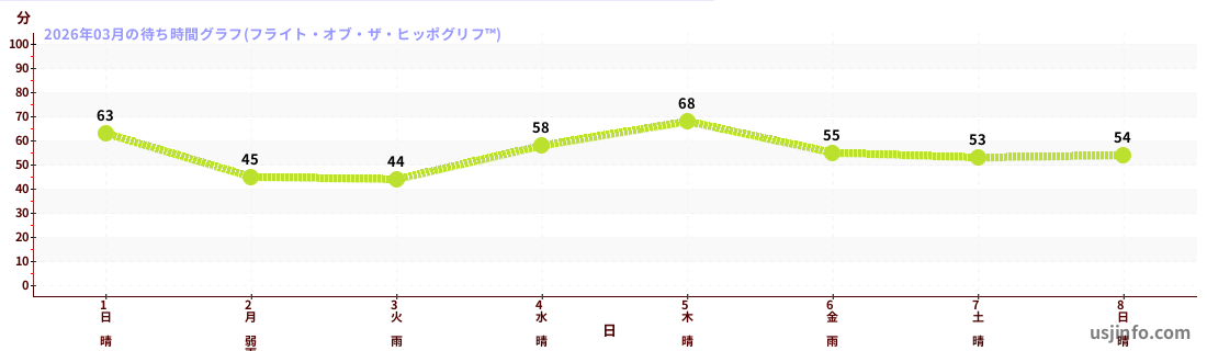 • フライト・オブ・ザ・ヒッポグリフ™$B$N(B2026年03月01日のの一日平均待ち時間