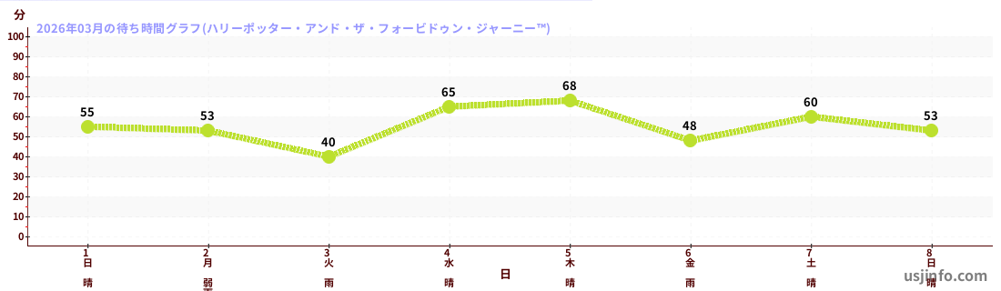 • ハリーポッター・アンド・ザ・フォービドゥン・ジャーニー™$B$N(B2026年03月01日のの一日平均待ち時間
