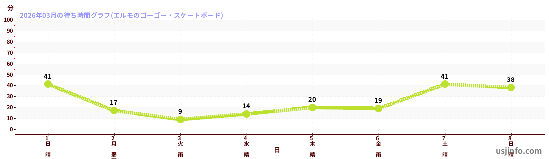 • エルモのゴーゴー・スケートボード$B$N(B2026年03月01日のの一日平均待ち時間