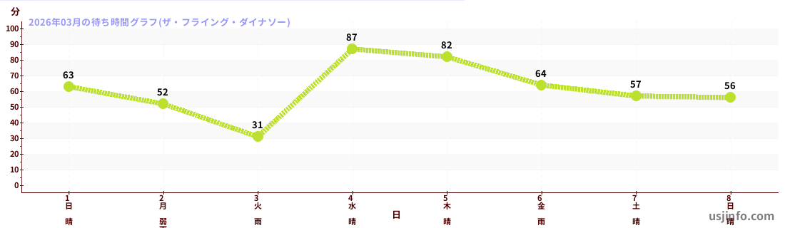 • ザ・フライング・ダイナソー$B$N(B2026年03月01日のの一日平均待ち時間