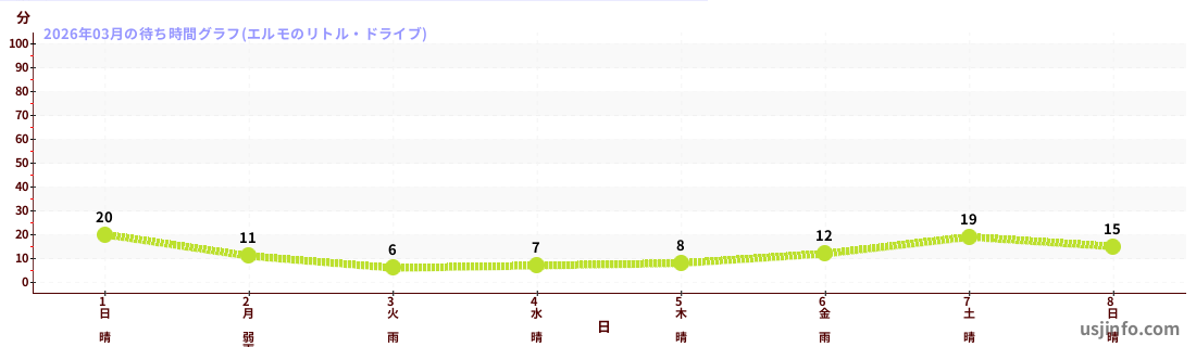 • エルモのリトル・ドライブ$B$N(B2026年03月01日のの一日平均待ち時間