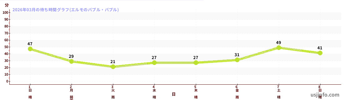 • エルモのバブル・バブル$B$N(B2026年03月01日のの一日平均待ち時間