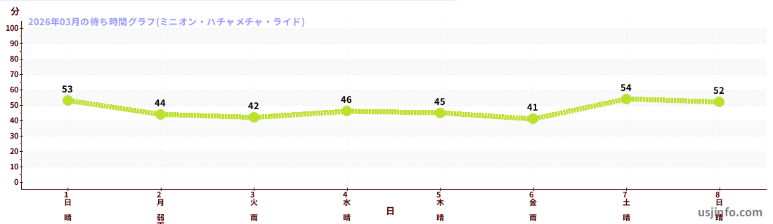 • ミニオン・ハチャメチャ・ライド$B$N(B2026年03月01日のの一日平均待ち時間